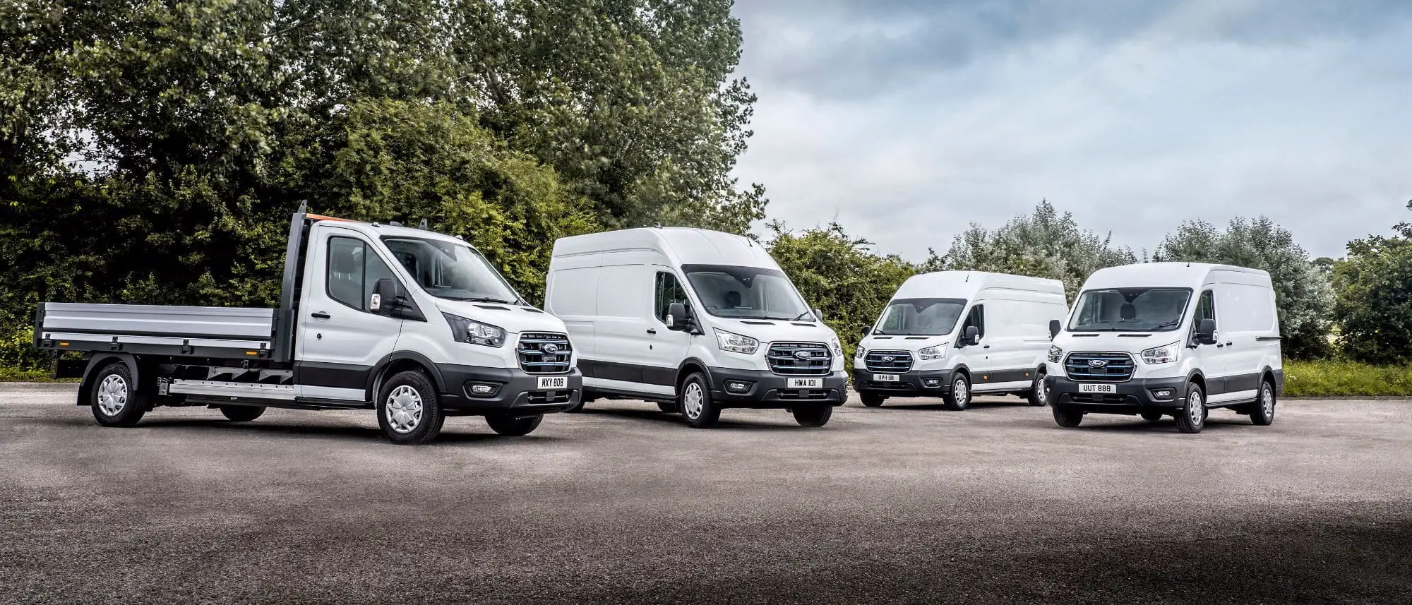 Ford Transit får du som Varebil, Enkelkabin Chassis, Dobbelkabin Chassis, Kombi og fabrikkbygget buss. Se utvalget her: