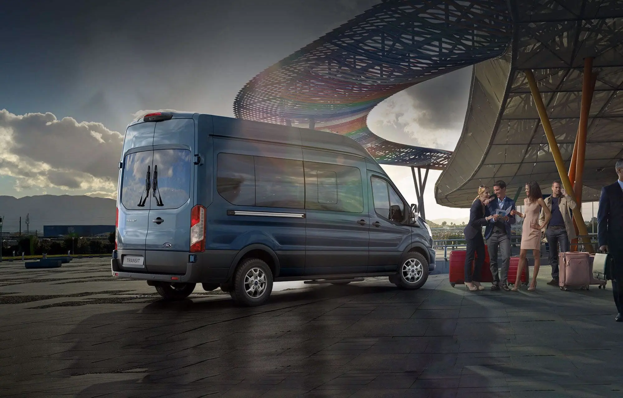 Transit minibuss er romslig og komfortabelt interiør, bred skyvedør, elektrisk betjent sidetrinn, lav inngangshøyde og sklisikkert gulv.